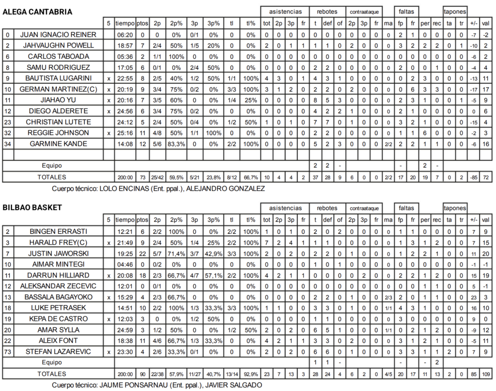 Tras el descanso, los Men In Black supieron administrar la renta con madurez, manteniendo la concentración defensiva y desplegando una amplia variedad de recursos en ataque. Más allá de las actuaciones destacadas de Hilliard y Jaworski, el equipo brilló por su solidez colectiva, con hasta seis jugadores superando la decena de créditos de valoración.